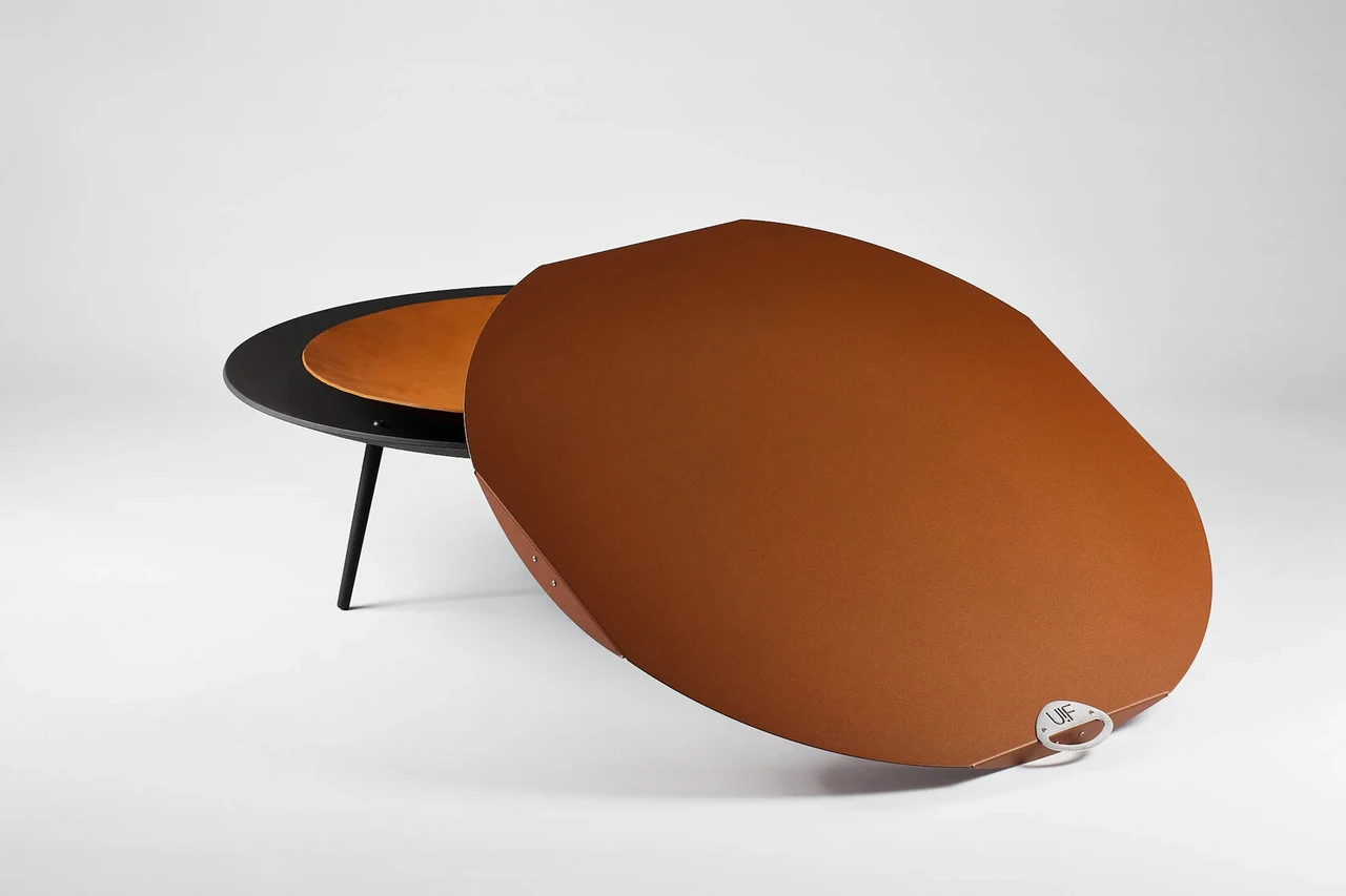 Всепогодная крышка для костровых чаш Up!Flame Steel Cover 850 oxi, изготовленная из высокопрочной стали большой толщины с тройным защитным атмосферным покрытием: