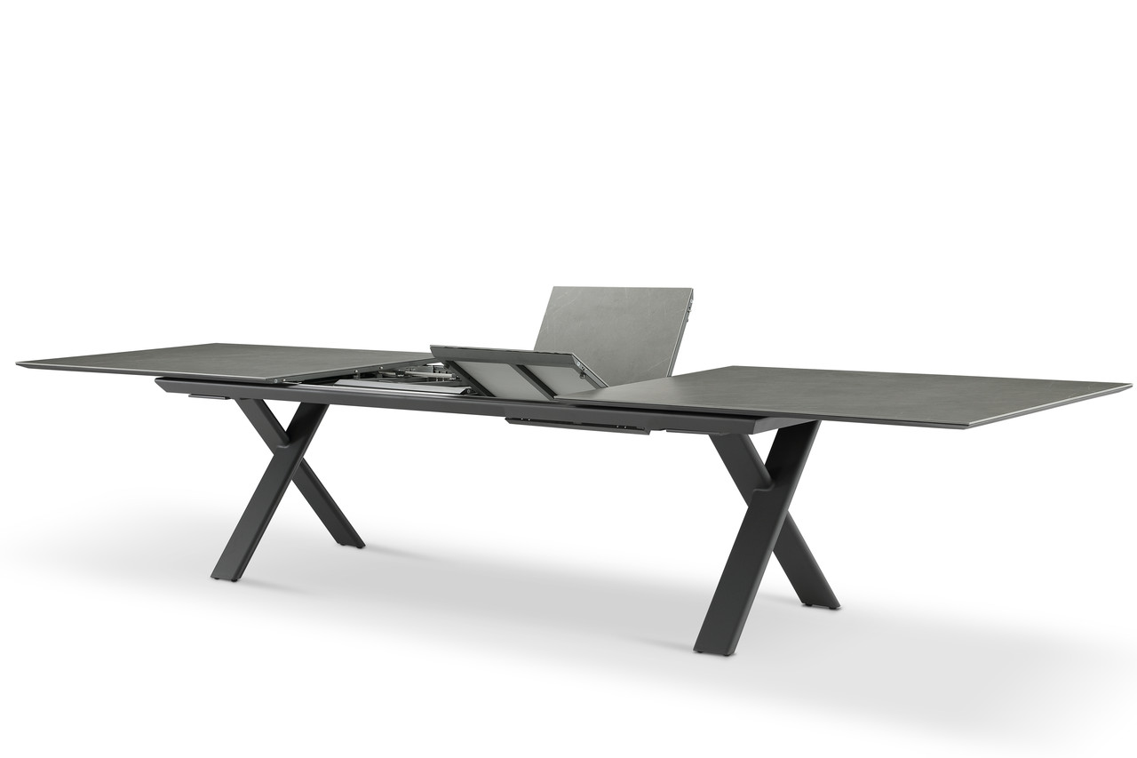 Timra - это роскошные столы со столешницей из спеченного камня. Спеченный камень — это новейший продукт современных инноваций, он изготовлен из порошка натурального камня. Таким образом, столешница очень прочная. Материал устойчив к атмосферным воздействиям, устойчив к царапинам и к экстремальным температурам.